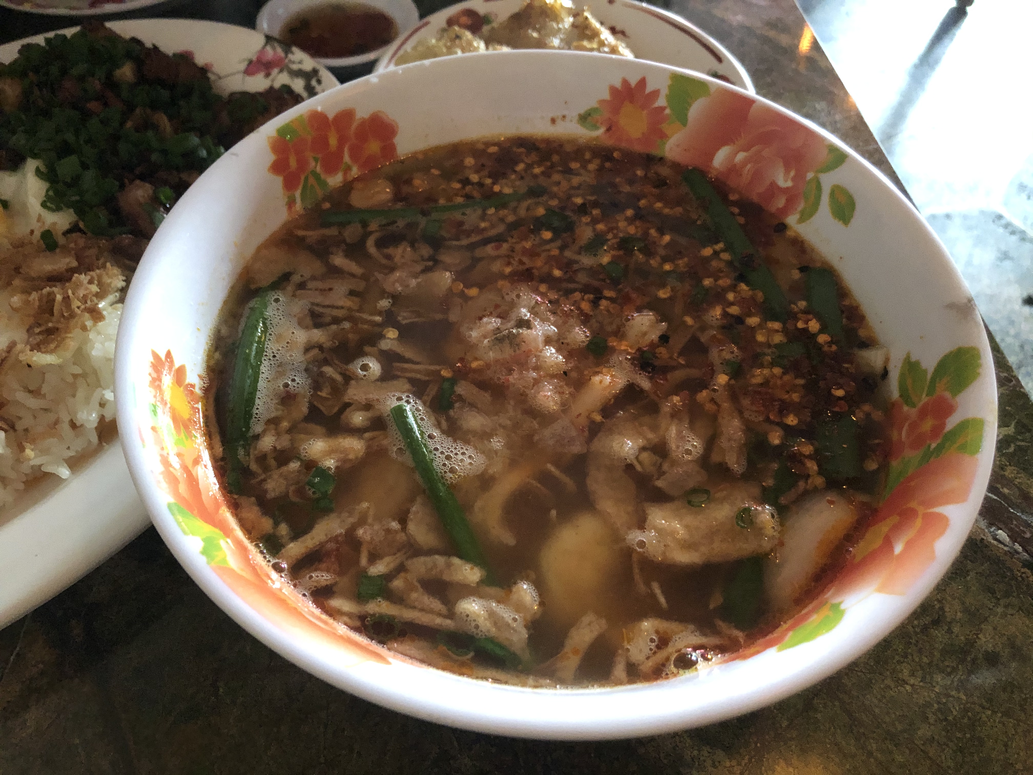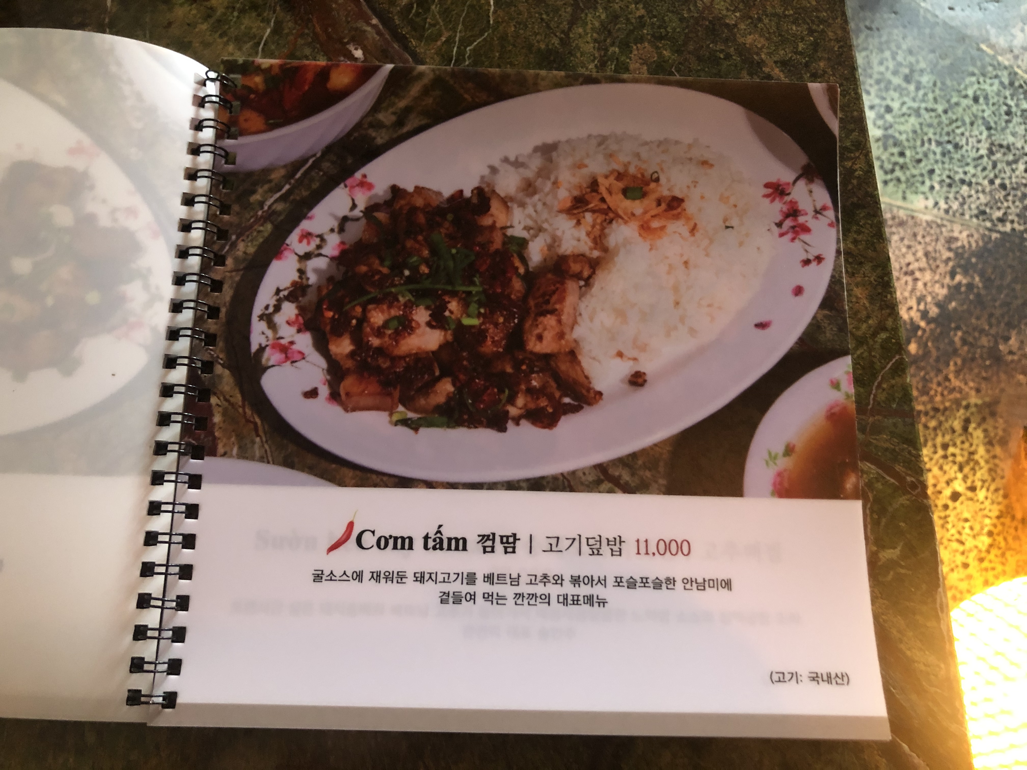 굴소스에 재워둔 돼지고기를 베트남 고추와 볶아서 포슬포슬한 안남미에 곁들여 먹는 깐깐의 대표 메뉴