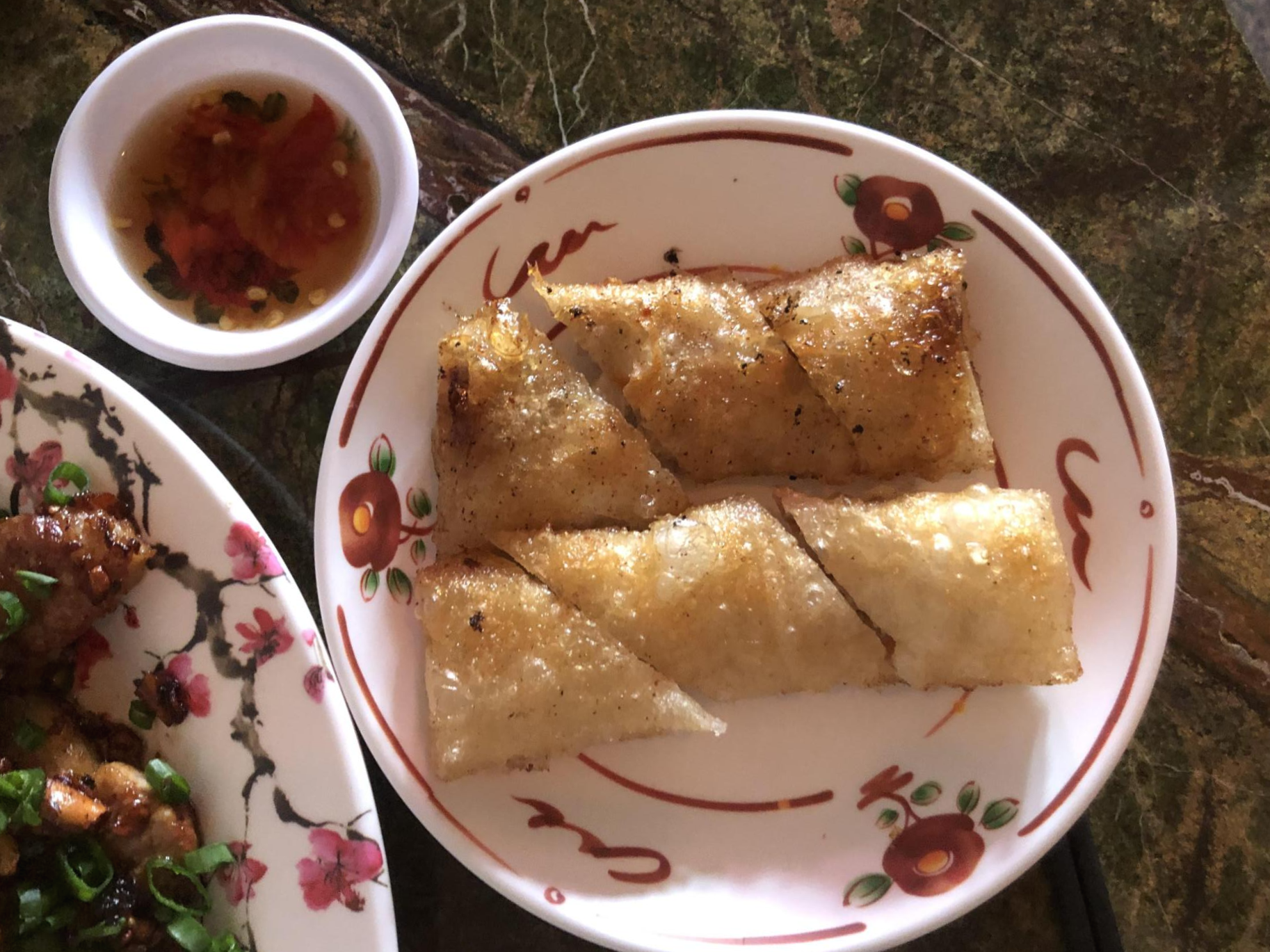 육즙 가득한 고기를 감싼 바삭하게 튀겨져 감싸인 라이스페이퍼를 소스에 찍어서 한입 먹어요!