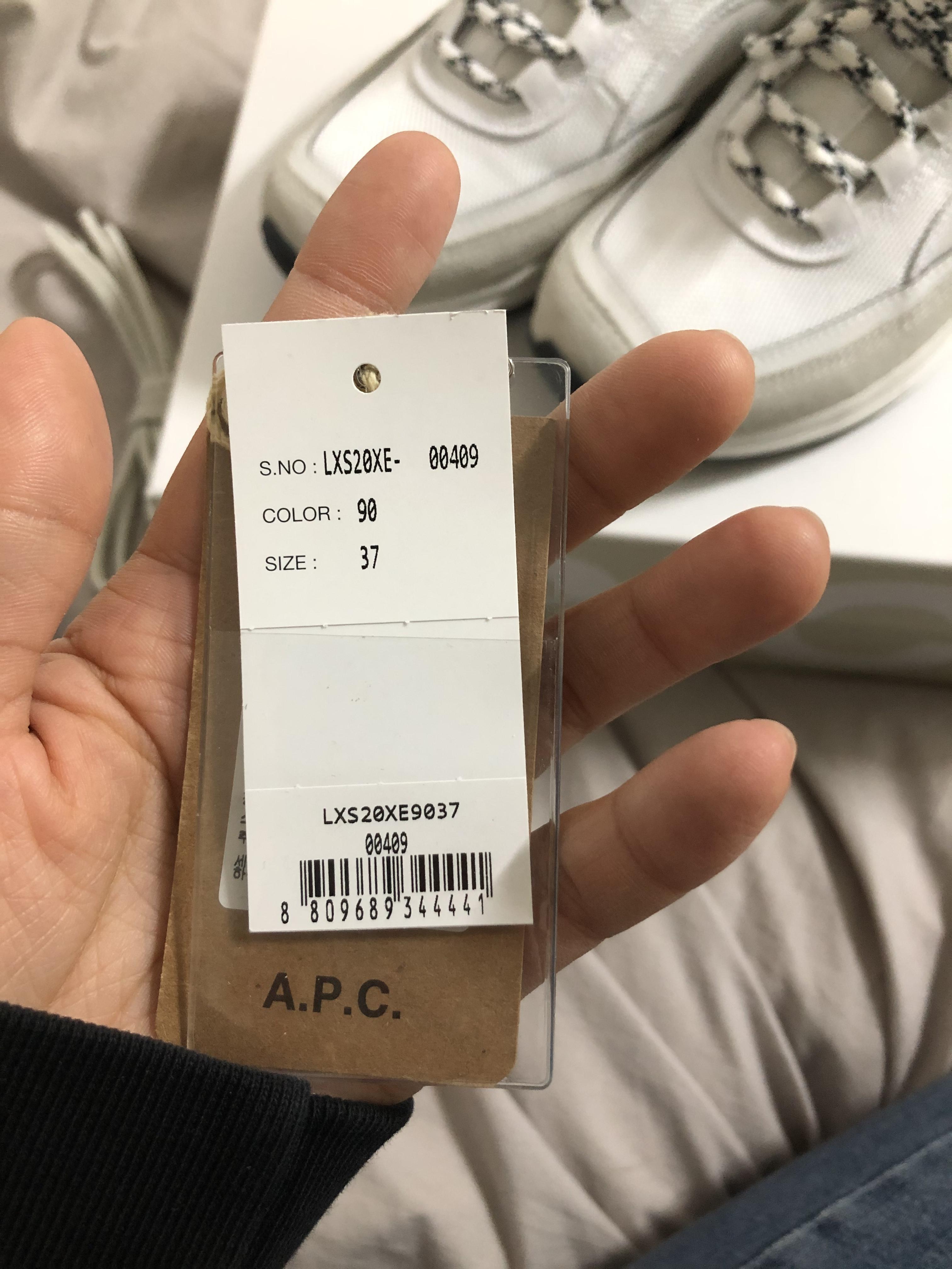 APC 런어라운드라는 제품이고 가격은 409,000원이에요. 사이즈는 37 칼라는 90 화이트예요.