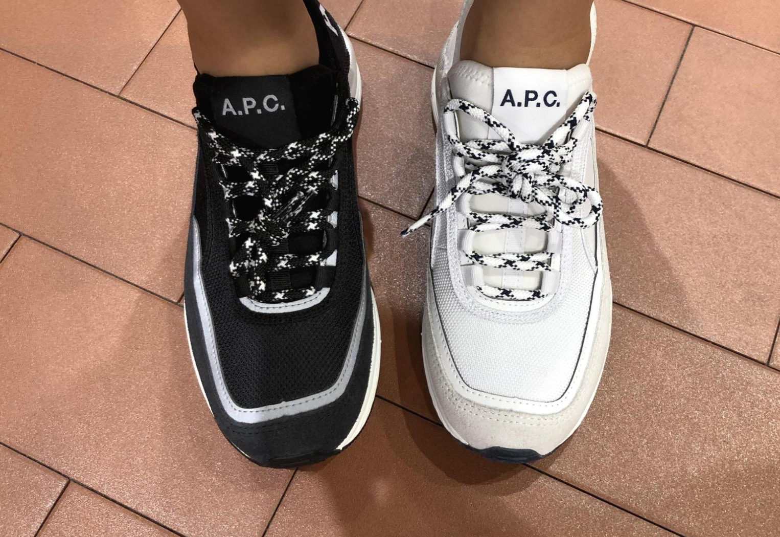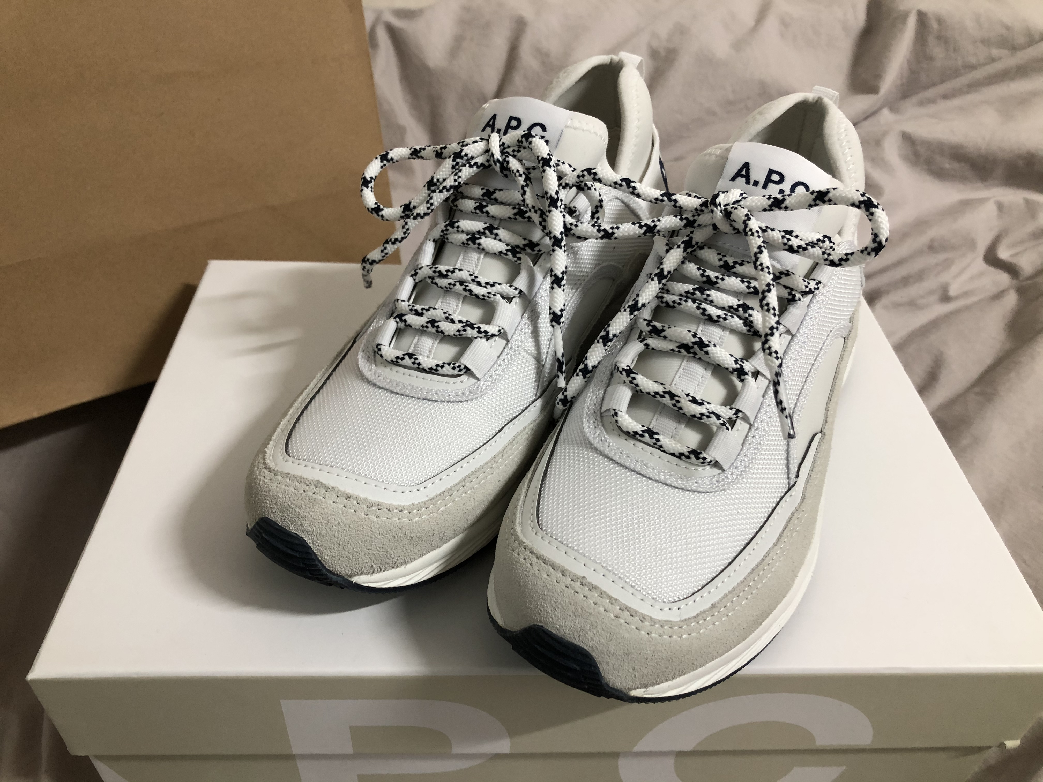 APC 스러운 깔끔한 살짝 하이탑인 운동화예요.
